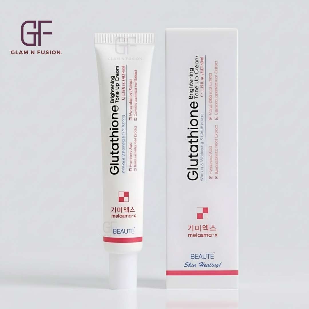Beaute Melasma-X Glutathione Brightening Tone Up Cream 45ml brightens skin, reduces melasma & dark spots, hydrates, and offers anti-aging benefits.