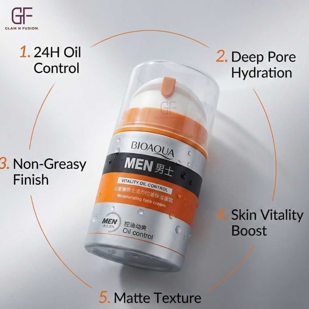 Oil Control Face cream provides effective oil regulation and deep skin hydration for men.