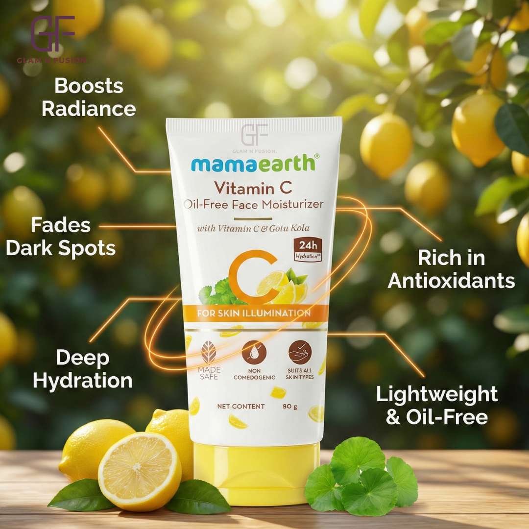 Mamaearth Vitamin C Oil Free Face Moisturizer 80g is a non-sticky formula that brightens skin and provides deep hydration.