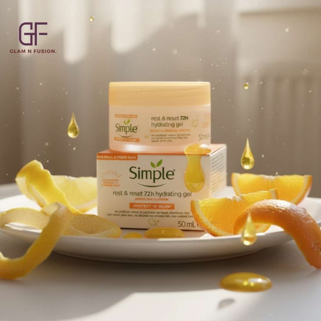 Simple Protect N Glow Rest and Reset 72h Hydrating Gel is a gel-textured night cream designed to revitalize dull and tired skin. Formulated with brightening antioxidants such as Vitamins C & E and organic Ginger Root Extract, it enhances the skin’s natural renewal process overnight, resulting in a glowing complexion by morning. This vegan-friendly moisturizer is free from artificial colors, perfumes, and harsh chemicals, making it suitable for all skin types, including sensitive skin.