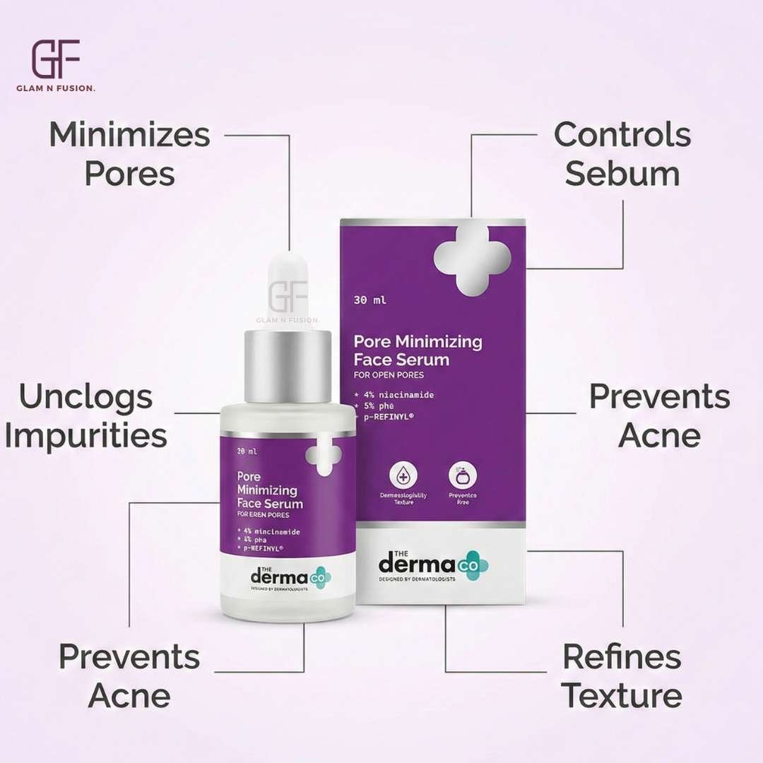 The Derma Co Pore Minimizing Face Serum 30ml is a powerful Pore Minimizing Face Serum that shrinks pores and controls oil for smooth skin.