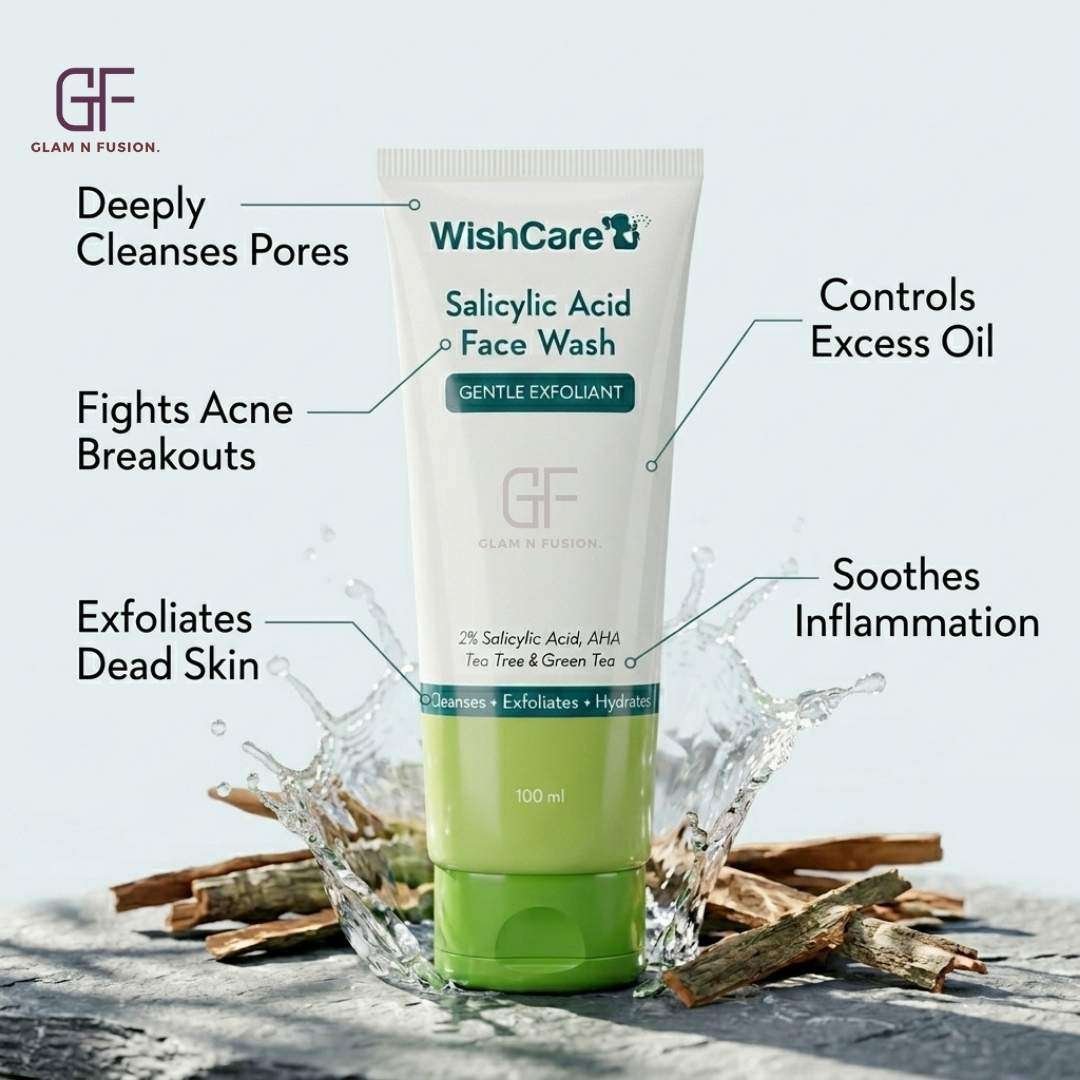 WishCare 2% Salicylic Acid Face Wash is a potent anti-acne cleanser that exfoliates dead skin, clears pores, and controls excess oil.